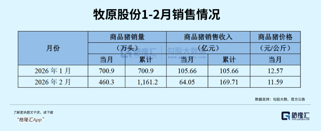 但由于猪价下跌,猪企显示出明显的“量增价减”,销售收入出现普遍下滑,牧原、温氏2月销售收入同比分别下跌23.98%和15.58%。